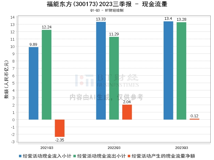 在现金流量方面,福能东方在年初至本报告期末的经营活动产生的现金流量净额为1247.17万元,相比上年同期的2.04亿元大幅下降。经营活动现金流入小计为13.4亿元,与上年同期的13.33亿元相当。经营活动现金流出小计为13.28亿元,较上年同期的11.29亿元有所增加。