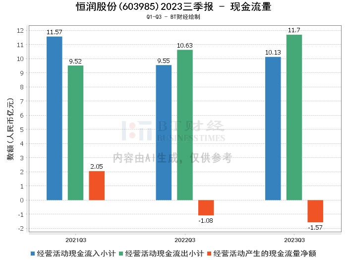 在现金流量方面,恒润股份2023年三季度的经营活动现金流入小计为10.13亿元,相比上年同期的9.55亿元增长了6.07%。经营活动现金流出小计为11.7亿元,相比上年同期的10.63亿元增长了10.07%。这可能是由于公司采购原材料增加导致的。