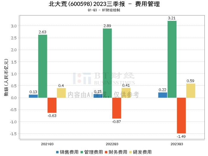 综上所述,北大荒2023年三季度的经营状况总体良好。公司的总资产、营业收入和现金流量净额均实现了较大幅度的增长,显示出公司的经营活动稳健有力。然而,公司的负债合计和营业成本的增长速度超过了营业收入的增长速度,这可能会对公司的盈利能力产生一定的压力。