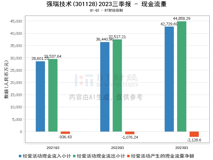 综上所述,强瑞技术在2023年三季度的经营状况总体良好,资产规模稳步扩大,盈利能力持续提升,但现金流量净额出现负值,需要引起注意。对于投资人来说,可以适当关注公司的发展情况,但也要注意公司的负债情况和现金流量情况。