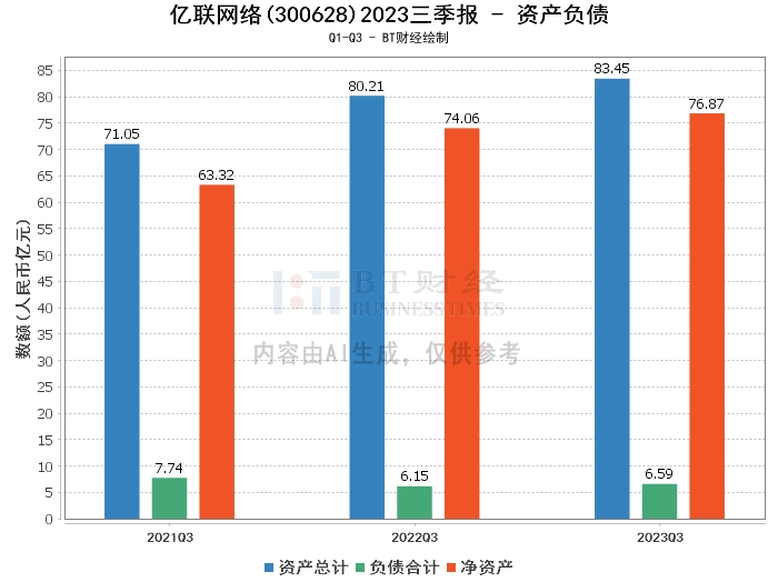 首先,从资产负债方面来看,亿联网络的总资产在本报告期末为83.45亿元,相比上年度末的86.07亿元有所下降。负债合计为6.59亿元,较上年度末的7.15亿元也有所减少。净资产为76.87亿元,相比上年度末的78.91亿元略有下降。资产负债率为7.89%,较上年度末的8.31%有所下降。