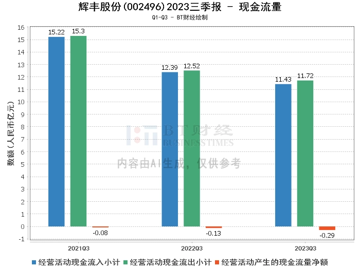 综上所述,辉丰股份2023年三季度的经营状况整体稳定,但现金流量净额下滑,净利润有所下降。公司在生物农资、农资电商、石化仓储供应链及项目投资等多个领域有稳定的业务,有较强的盈利能力。但是,公司需要注意现金流量的管理,提高现金流量净额,以保障公司的日常运营和长期发展。