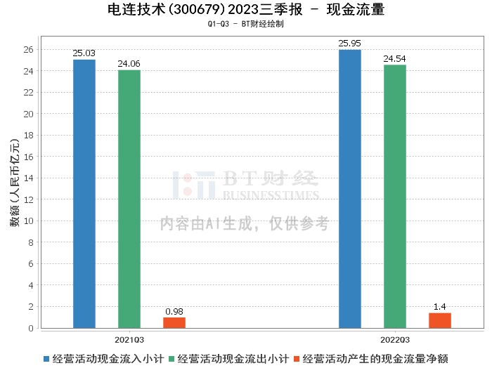 在现金流量方面,电连技术2023年三季度的经营活动产生的现金流量净额为3.43亿元,相比上年同期增长了144.68%。这表明公司的经营活动产生的现金流量情况良好,有利于公司的运营和发展。