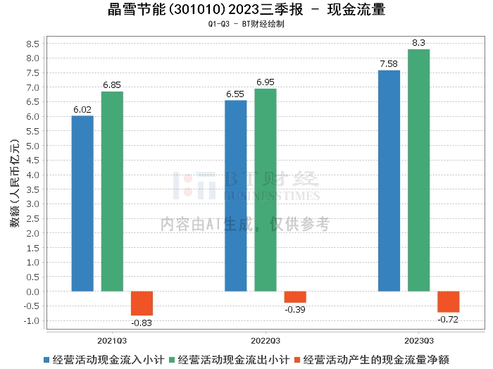 综上所述,晶雪节能2023年三季度的经营状况总体稳健。在资产负债方面,公司总资产和负债均有所增长,净资产略有增长,资产负债率有所上升。在利润方面,公司营业收入、营业利润和净利润均有所增长,但毛利率和净利率有所下降。在现金流量方面,公司经营活动现金流入和现金流出均有所增长,但经营活动产生的现金流量净额下降。