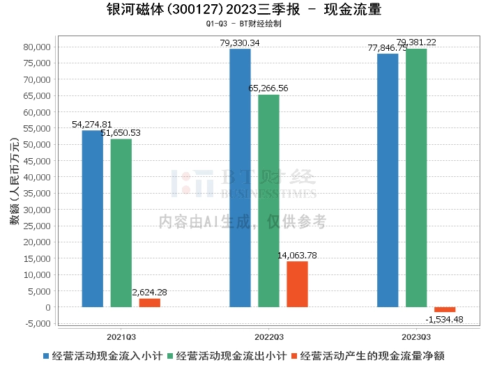 综上所述,银河磁体2023年三季度的经营状况总体稳定。尽管营业收入有所减少,但公司通过有效控制营业成本,使得净利润得以增长。同时,公司积极调整资产负债结构,增加了存货和其他流动资产,以应对市场变化。然而,公司的现金流量净额出现了减少,这可能会对公司的日常运营产生一定影响。