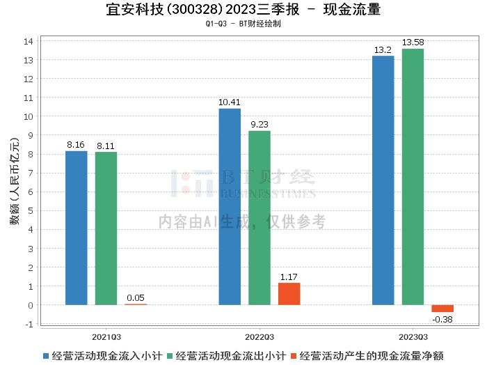 综上所述,宜安科技2023年三季度的经营状况总体稳定,净利润大幅增长,显示出公司的盈利能力增强。但是,现金流量净额大幅下降,反映出公司在经营活动方面的现金流压力。对于投资者来说,需要关注公司未来的现金流状况,以及公司如何通过优化经营活动来改善现金流状况。