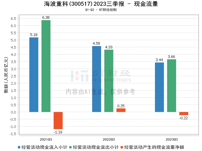 综上所述,海波重科在2023年三季度面临了一些挑战,包括市场行情变化、竞争加剧、收到的现款减少等,这些都对公司的经营业绩产生了一定的影响。但是,公司通过调整经营策略、加大市场开发力度、提升产品价格竞争力等措施,努力提升经营业绩。同时,公司的负债状况有所改善,资产负债率有所下降。