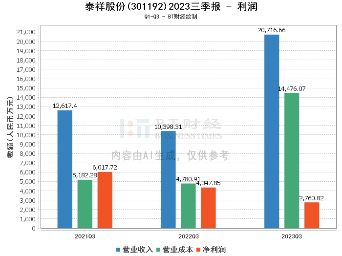 【BT财报瞬析】泰祥股份2023三季报:总资产增长38.69%,净利润下降36.30%