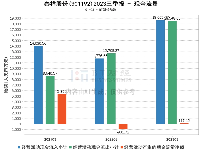 综上所述,泰祥股份在2023年第三季度的经营状况总体稳定。尽管公司的总资产和负债均有所增长,但资产负债率仍在可接受范围内。同时,公司的营业收入有所增长,但净利润出现下滑,这可能是由于成本控制方面存在一定问题。此外,公司的现金流量情况也有所改善,表明公司的经营活动较为稳健。