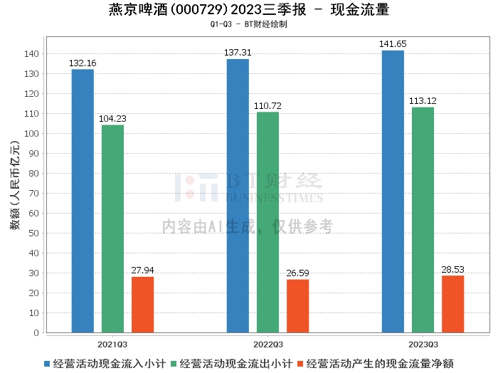 综上所述,燕京啤酒2023年三季度的经营状况良好,公司的资产规模、营业收入和利润都在稳步增长,现金流状况良好。这些都反映出公司的经营管理能力强,市场竞争力强,具有良好的发展前景。