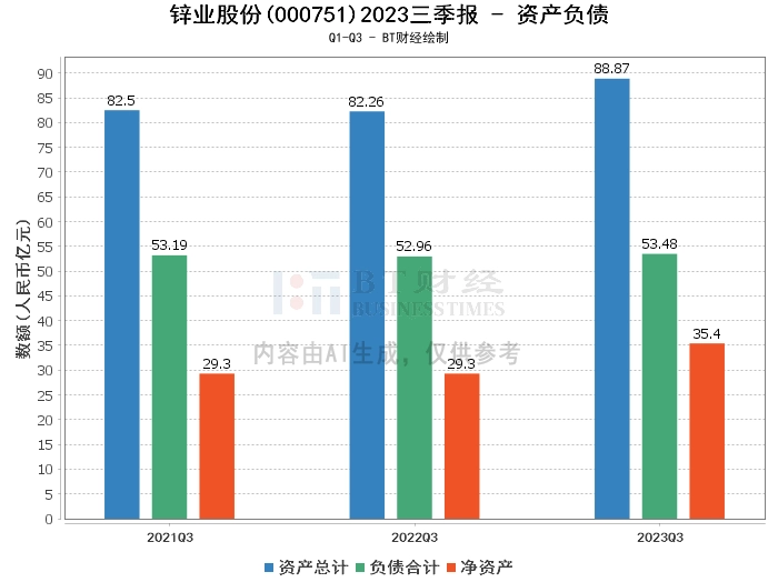从资产负债方面看,锌业股份公司2023年三季度的总资产为88.87亿元,较上年度末的82.22亿元增长8.10%。负债合计为53.48亿元,较上年度末的52.25亿元增长2.35%。净资产为35.4亿元,较上年度末的29.96亿元增长18.14%。资产负债率为60.17%,较上年度末的63.56%有所下降。这表明公司的资产规模在扩大,同时负债规模的增长速度较慢,公司的财务结构得到了一定程度的优化。