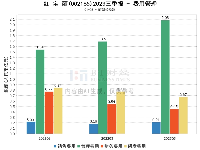 从资产负债方面来看,红宝丽2023年三季度末的总资产为57.13亿元,相比上年度末的56.04亿元增长了1.96%。负债合计为36.54亿元,相比上年度末的35.7亿元增长了2.36%。净资产为20.59亿元,相比上年度末的20.34亿元增长了1.23%。资产负债率为63.96%,相比上年度末的63.7%有所上升。这些变化主要是由于公司实现营业收入增加,同时筹资使得货币资金余额占资产比重较大。