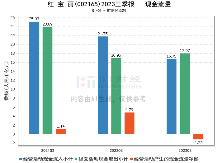 在现金流量方面,红宝丽2023年三季度的经营活动产生的现金流量净额为-1.22亿元,相比上年同期的4.79亿元转为负值。经营活动现金流入小计为16.75亿元,相比上年同期的21.75亿元有所下降。经营活动现金流出小计为17.97亿元,相比上年同期的16.95亿元有所上升。这些变化主要是由于三季度公司聚醚产品和异丙醇胺销量合计大幅增加,期末应收款项增加所致,而上年同期由于存货较年初减少、经营性应收款项减少、待抵进项税退回等致使现金流增加。