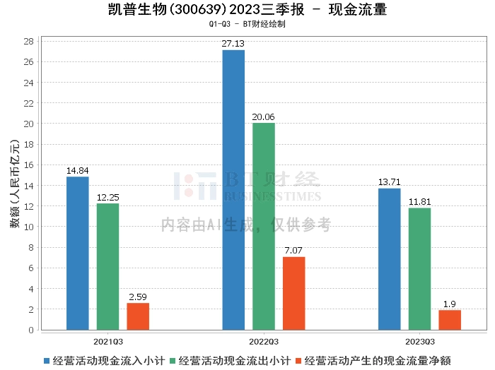综上所述,凯普生物2023年三季度的财务状况总体稳健,但营业收入和净利润均出现大幅下滑,现金流量状况也较为紧张。这可能是由于市场环境变化或公司经营策略调整等原因。对于投资者来说,需要密切关注公司的经营状况和市场环境变化,谨慎做出投资决策。