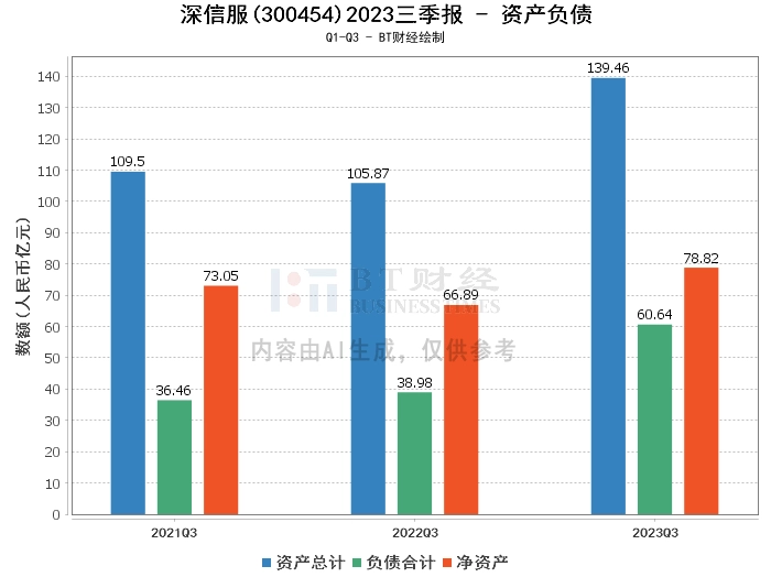 在资产负债方面,深信服2023年三季报显示,公司的总资产为139.46亿元,相比上年度末的121.83亿元有所增长。负债总额也从上年度末的44.63亿元增加到本报告期末的60.64亿元。净资产从上年度末的77.2亿元增加到本报告期末的78.82亿元。资产负债率从上年度末的36.63%增加到本报告期末的43.48%。这些变化主要是由于公司新增了一项投资项目,同时增加了短期借款。