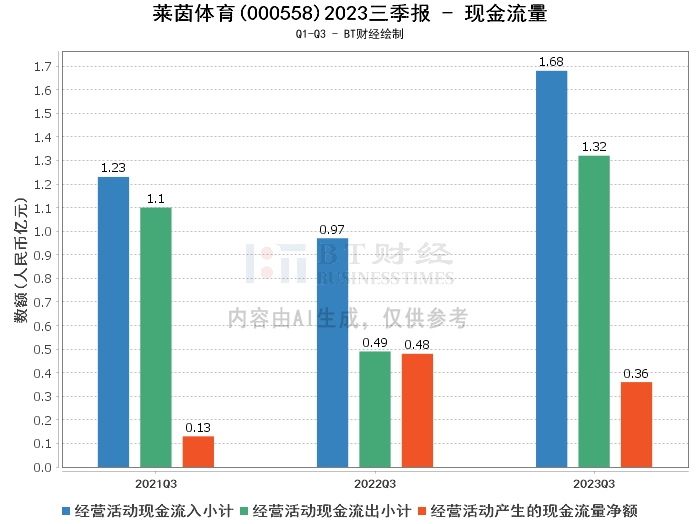 在现金流量方面,莱茵体育2023年三季度经营活动产生的现金流量净额为3633.29万元,相比上年同期的4825.24万元有所下降。经营活动现金流入小计为1.68亿元,较上年同期的9729.73万元大幅增长,经营活动现金流出小计为1.32亿元,也较上年同期的4904.49万元有所增长。