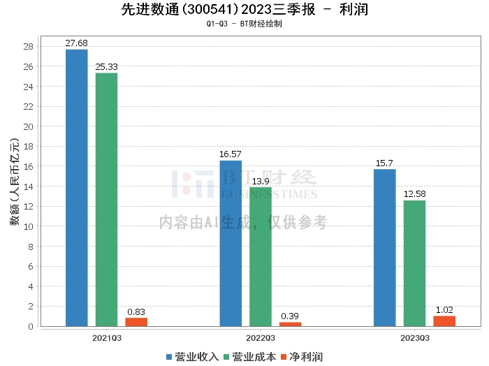 综上所述,先进数通在2023年三季度的经营状况整体良好。公司的资产负债率显著下降,财务结构得到了显著改善。同时,公司的净利润实现了大幅增长,显示出公司的盈利能力得到了提升。然而,公司的营业收入有所下滑,显示出市场竞争的压力。