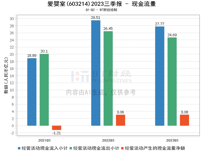 综上所述,爱婴室在2023年三季度的经营状况总体稳健。尽管营业收入和营业利润有所下降,但通过精细化经营管理,公司成功降低了营业成本,使得净利润基本保持稳定。此外,公司在资产负债和现金流管理方面也表现出稳健,总资产和负债总额均有所减少,现金流量净额略有增加。
