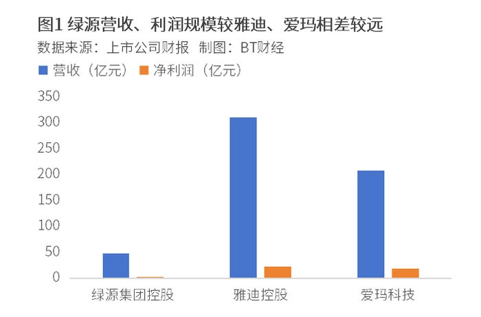 上市公司的财务数据也印证了绿源和头部品牌雅迪、爱玛之间的差距。