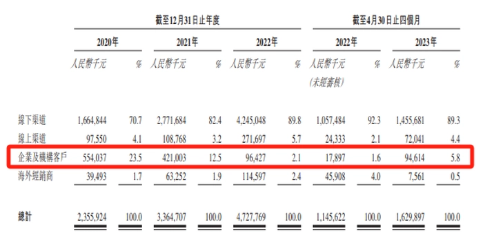 但2021年,据公司招股书介绍,两大“共享出行服务提供商”客户减少了采购,直接导致公司B端收入大幅减少。在财报中列举的收入明细中,“企业及机构客户”的收入从2020年的5.54亿元大幅减少至2022年的0.96亿元。