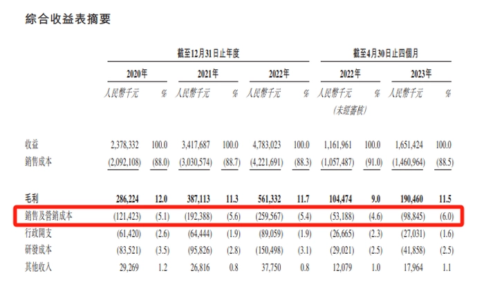 这样的竞争环境令上市公司业绩“流血”,侵蚀着盈利能力。绿源招股书显示,从2020年到2022年,公司销售及营销成本节节攀升,从2020年的1.21亿元升至2022年的2.60亿元。这样的营销支出,远远高于同期的研发成本,即0.84亿元和1.50亿元。