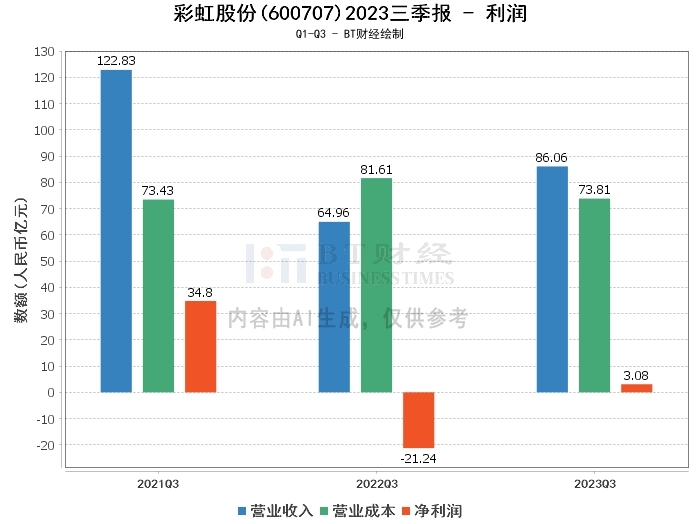 【BT财报瞬析】彩虹股份2023三季报:营业收入增长32.48%,净利润扭亏为盈,现金流量净额下降26.10%