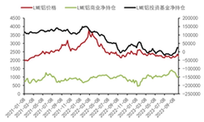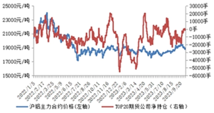 10月18日,沪铝持仓量TOP20期货公司持仓由上月净空头15256手收缩至1105手。9月中旬至10月中旬,国内主力持仓呈现“高抛低吸”特征,在价格上涨至平台上沿时显著增加空头敞口,在价格回落后收缩空头敞口,重回多空平衡状态。10月13日,伦铝商业机构持有净空头139752手,较上月同期空头敞口扩大16712手,投资基金转为持有净多头16609手,较上月同期扩大多头敞口23034手。