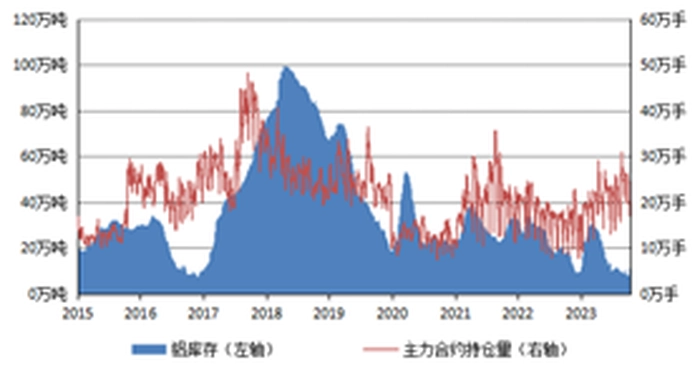 10月13日,沪铝主力合约持仓量20.1万手,一手5吨,上期所指定交割仓库铝库存11万吨,盘面持仓规模与库存之比回落至9,处于历史均值偏高水平;LME3个月期铝持仓61.83万手,一手25吨,库存回落至48.86万吨,月均可交割产量175万吨,未来3个月内持仓量与交易所库存和产量之和的比值回落至2.69,综合考虑伦铝Cash/3M为贴水,市场炒作风险处在中等水平。