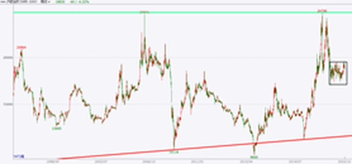 图4:沪铝和伦铝分别处在长期价格区间中部和中部偏下位置