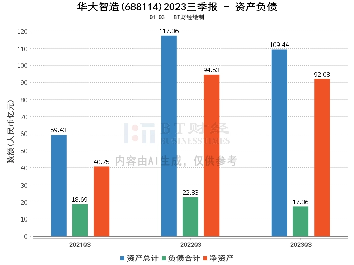 首先,从资产负债方面来看,华大智造的总资产从上年度末的112.18亿元降至本报告期末的109.44亿元,负债合计从上年度末的17.66亿元降至本报告期末的17.36亿元,净资产从上年度末的94.53亿元降至本报告期末的92.08亿元。资产负债率略有上升,从上年度末的15.74%提升至本报告期末的15.86%。