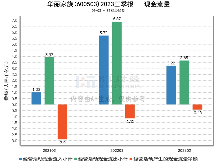 综上所述,华丽家族公司在2023年三季度的经营状况呈现出一些积极的变化,如资产负债率的下降和现金流量状况的改善。然而,公司的营业收入和利润都在下降,显示出公司的盈利能力面临压力。这可能与房地产市场的波动和政策环境的变化有关。