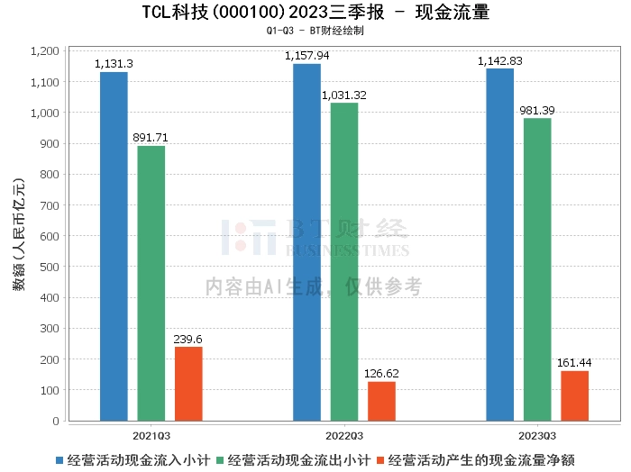 综上所述,TCL科技在2023年三季度的经营状况总体良好。公司在半导体显示和新能源光伏领域的业务表现出色,实现了营收和净利润的增长。公司的资产负债结构也有所优化,盈利能力和现金流量能力都有所提升。