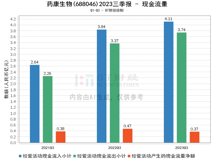 综上所述,药康生物2023年三季度在业务增长和研发投入方面表现出色,但在利润和现金流方面有所下滑。这可能是由于公司在扩大市场和增强研发能力的过程中,投入了大量的资金,导致短期内的利润和现金流有所下滑。但从长远来看,这些投入有助于公司的持续发展和竞争力提升。