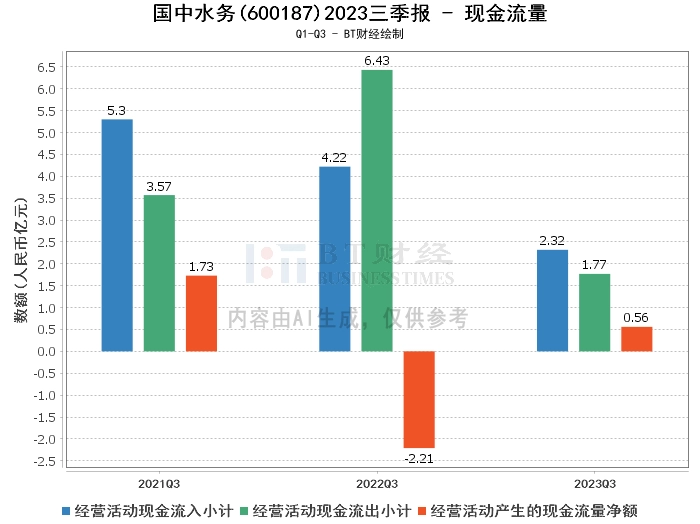 综上所述,国中水务2023年三季度的经营状况有所改善,资产负债率显著下降,业绩扭亏为盈,现金流状况也有所改善。但是,公司的营业收入和现金流入都有所下降,显示出公司的营业规模有所缩小,这可能与公司的一些业务调整有关。