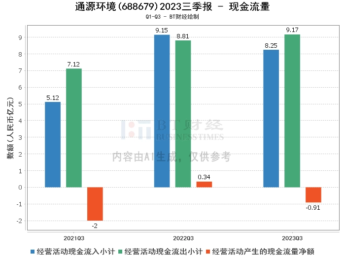在现金流量方面,2023年三季度,经营活动产生的现金流量净额为-9116.77万元,较上年同期的3380.76万元发生了较大变化。经营活动现金流入小计为8.25亿元,较上年同期的9.15亿元有所下降。经营活动现金流出小计为9.17亿元,较上年同期的8.81亿元有所增加。