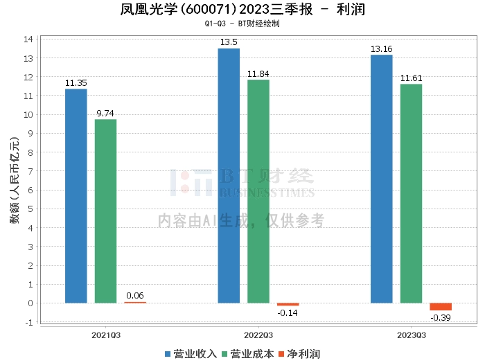 凤凰光学股份有限公司(股票代码:600071)是一家拥有五十余年历史的综合光学元件及产品的生产商,主要业务包括光学产品、智能控制器和锂电芯产品的研发、制造和销售。然而,根据其2023年三季度财报,公司在报告期内面临一些挑战。