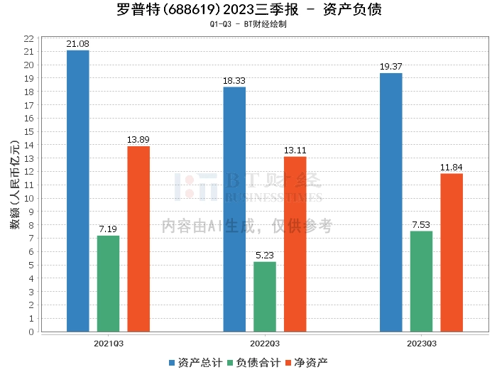从资产负债方面看,罗普特2023年三季度的总资产为19.37亿元,相比上年度末的18.79亿元有所增长。负债合计为7.53亿元,较上年度末的6.53亿元增加。公司的净资产为11.84亿元,相较于上年度末的12.26亿元有所减少。资产负债率为38.85%,较上年度末的34.77%有所上升。