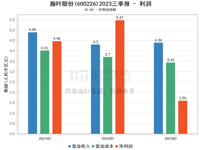 【BT财报瞬析】瀚叶股份2023三季报:营业收入增长,净利润下滑,资产负债率微升