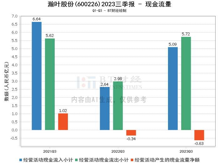 综上所述,瀚叶股份在2023年三季度的经营状况表现稳定,营业收入有所增长,但净利润有所下滑。在资产负债方面,公司的总资产、负债和净资产均有所增长,但资产负债率也有所上升。在现金流量方面,公司的经营活动现金流入和现金流出均有所增长。