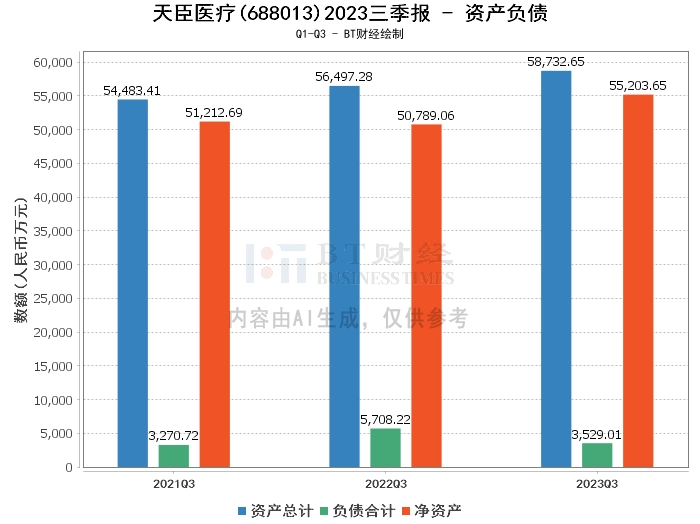 从资产负债方面来看,天臣医疗2023年三季度末的总资产为5.87亿元,相比上年度末的5.43亿元有所增长。负债合计为3529.01万元,相比上年度末的3504.47万元略有增加。净资产为5.52亿元,相比上年度末的5.08亿元有所提升。资产负债率为6.01%,相比上年度末的6.45%有所下降。