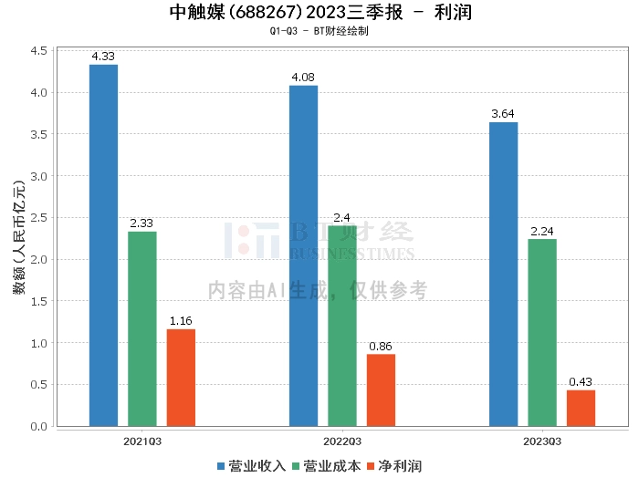 【BT财报瞬析】中触媒2023三季报:营业收入增长59.10%,净利润下滑62.54%,现金流量净额显著改善