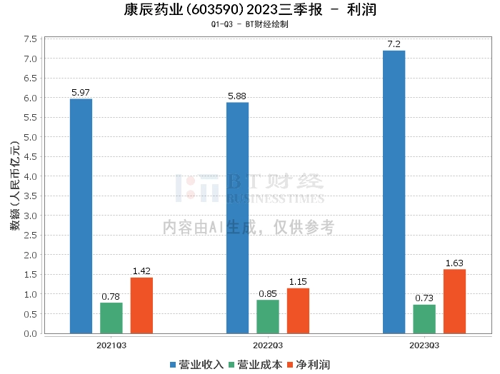 其次,从利润方面看,康辰药业的营业收入在年初至本报告期末为7.2亿元,较上年同期的5.88亿元有所增长。营业利润在年初至本报告期末为1.89亿元,较上年同期的1.25亿元有所提升。净利润在年初至本报告期末为1.63亿元,较上年同期的1.15亿元有所增长。毛利率和净利率分别为89.83%和22.62%,均较上年同期有所提高。