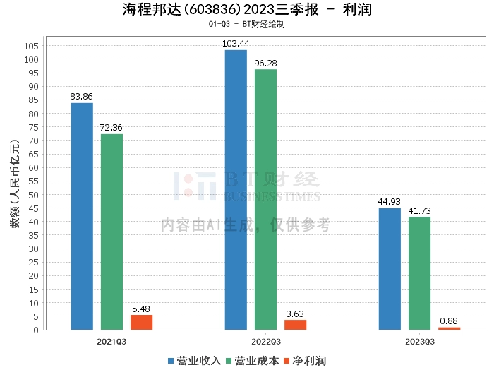 【BT财报瞬析】海程邦达2023三季报:营业收入、净利润下滑,现金流量净额减少