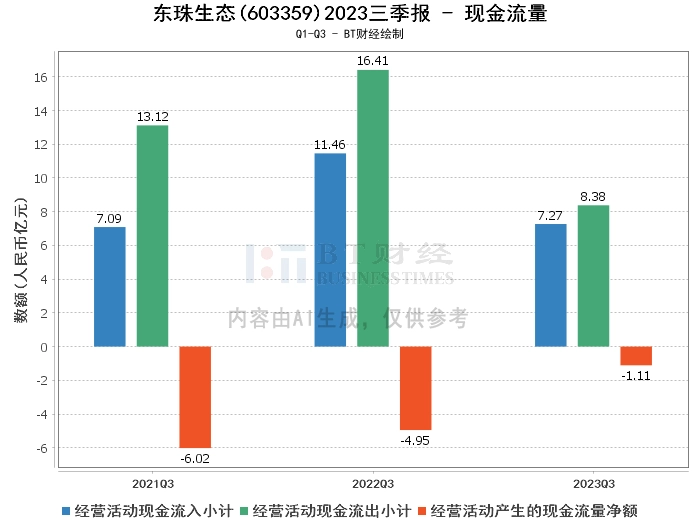 在现金流量方面,公司2023年三季度的经营活动现金流入小计为7.27亿元,较上年同期的11.46亿元有所下降。经营活动现金流出小计为8.38亿元,较上年同期的16.41亿元有所下降。