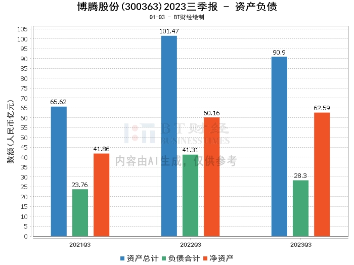 在资产负债方面,博腾股份2023年三季报显示,公司的总资产为90.9亿元,相比上年度末的101.44亿元有所下降。负债合计为28.3亿元,较上年度末的36.72亿元减少。公司的净资产为62.59亿元,略低于上年度末的64.72亿元。资产负债率为31.14%,较上年度末的36.2%有所下降。