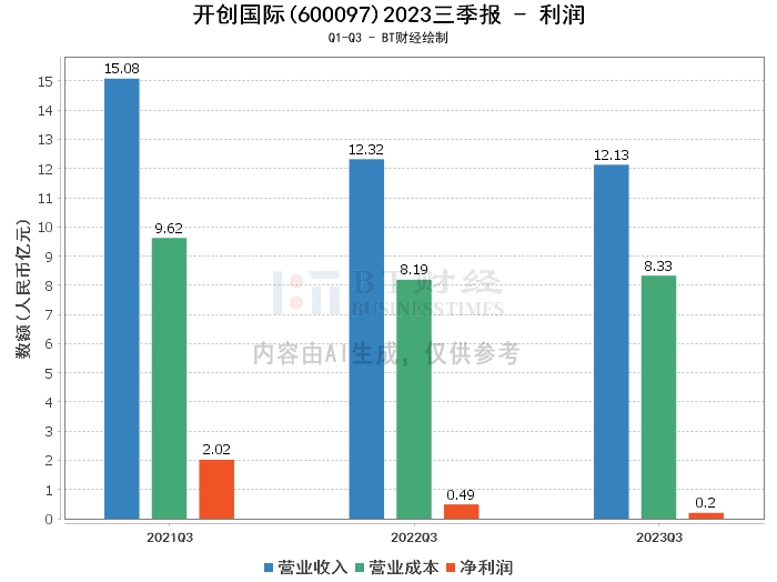 【BT财报瞬析】开创国际2023三季报:资产负债率下降,净利润受压,现金流量净额转负