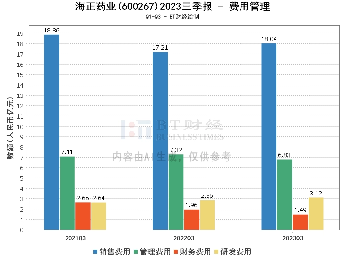 综上所述,海正药业2023年三季度的经营状况整体稳健,净利润增长显著,资产负债管理表现稳健。然而,营业收入略有下降,显示出市场竞争压力加大,公司需要进一步提升营销能力和产品竞争力。