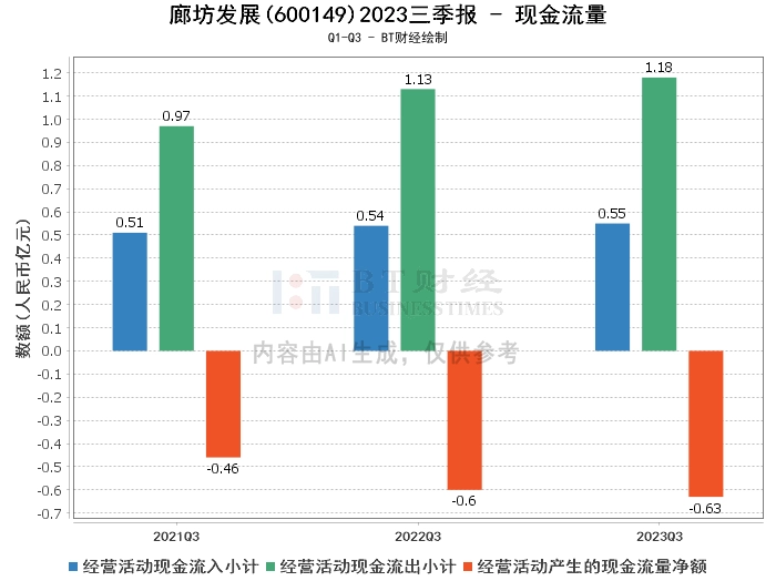 综上所述,廊坊发展在2023年三季度的运营状况总体稳定,供热业务稳步推进,资产负债率有所下降,盈利能力有所增强。然而,公司的经营活动现金流出增加,这可能会对公司的经营活动产生一定的影响。