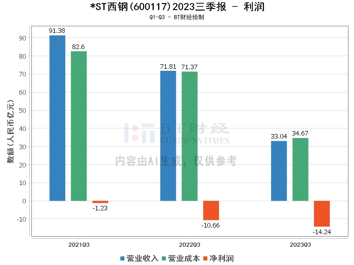 *ST西钢(股票代码:600117)是中国西部地区最大的特殊钢生产基地,主要从事特殊钢的冶炼和延压加工业务。其产品广泛应用于汽车、工程机械、铁路、船舶、石油化工、矿山机械、煤炭机械、新能源、兵器装备及航空航天等行业。然而,根据其2023年三季度财报,公司面临一些经营挑战。