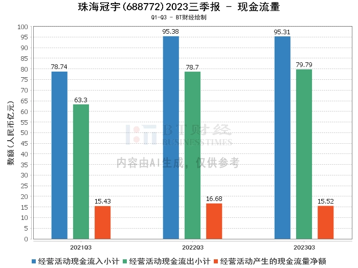 综上所述,珠海冠宇在2023年三季度的经营状况总体稳定,净利润有大幅增长,资产负债状况良好,现金流量稳定。然而,公司的营业收入增长较慢,经营活动产生的现金流量净额有所下降,这些都是需要关注的问题。